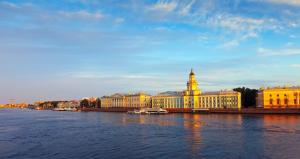 View of St. Petersburg. Universitetskaya Embankment in morning